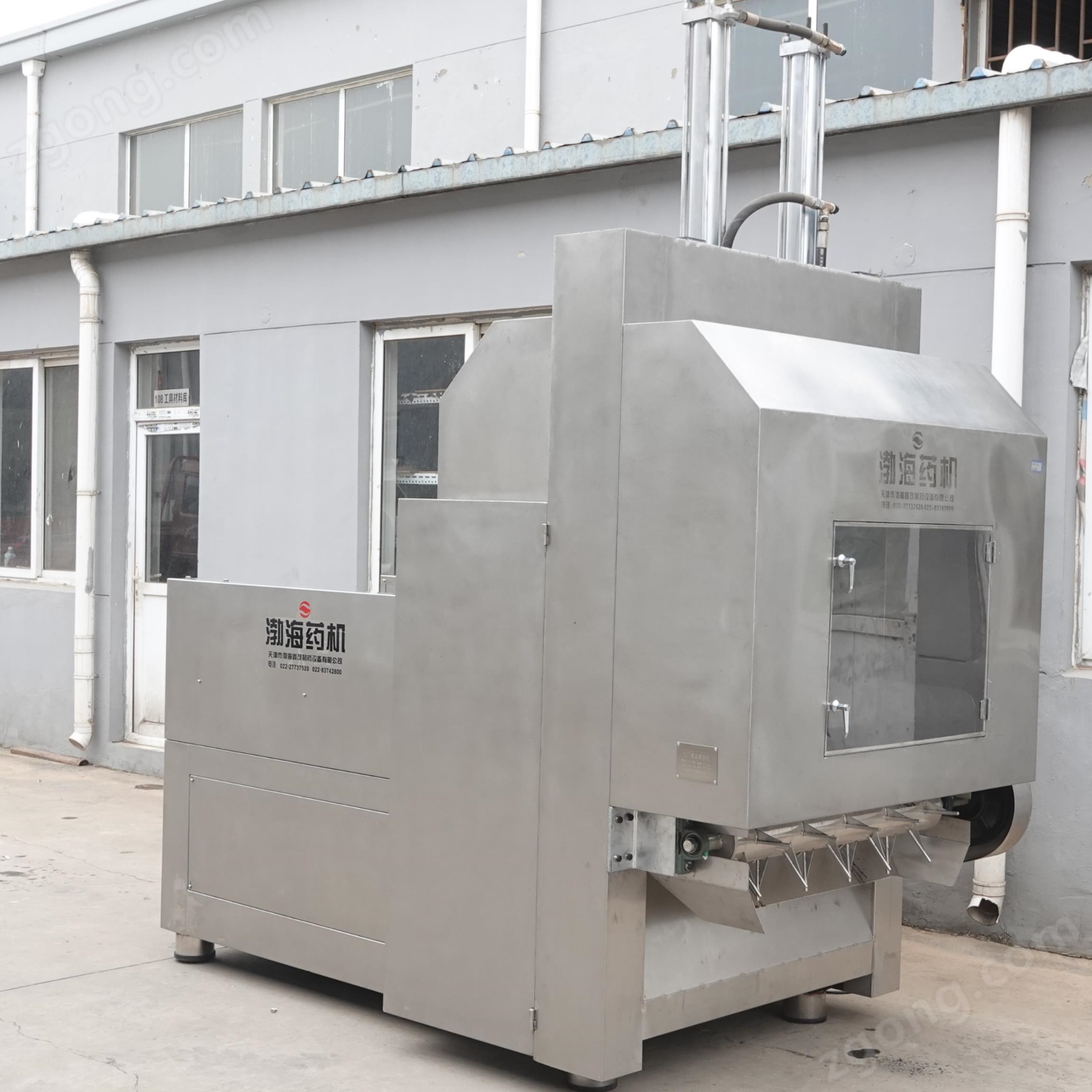 主要用途:主要用于物料經(jīng)打包機(jī)打包壓實(shí)后壓縮包類、長條類、捆類的中藥材切制處理。壓縮包切制后的塊狀物料經(jīng)出料口的打散機(jī)處理,方便進(jìn)入下一個(gè)工序。切制后的物料長短均勻,可用于提取或者粉碎。